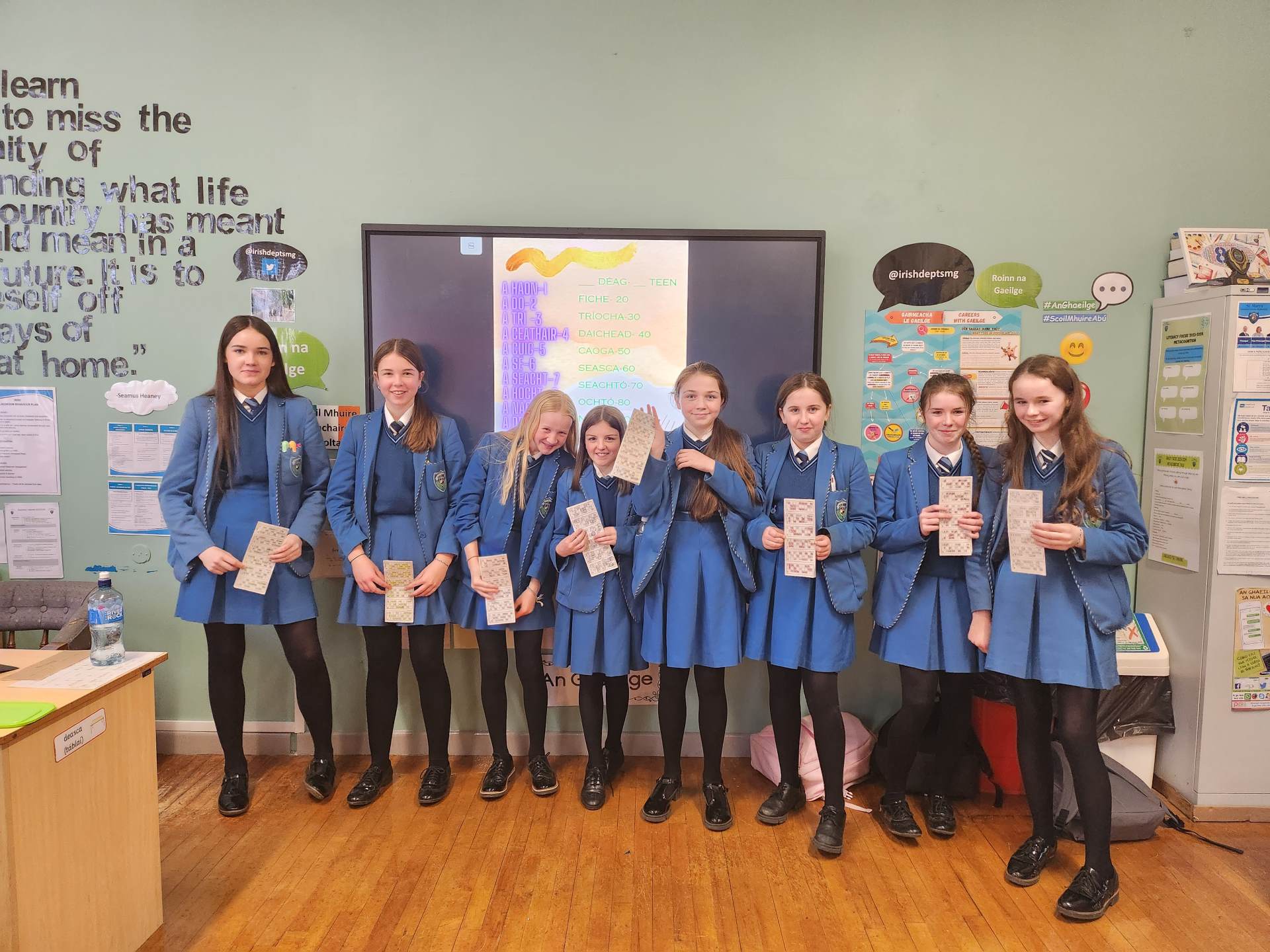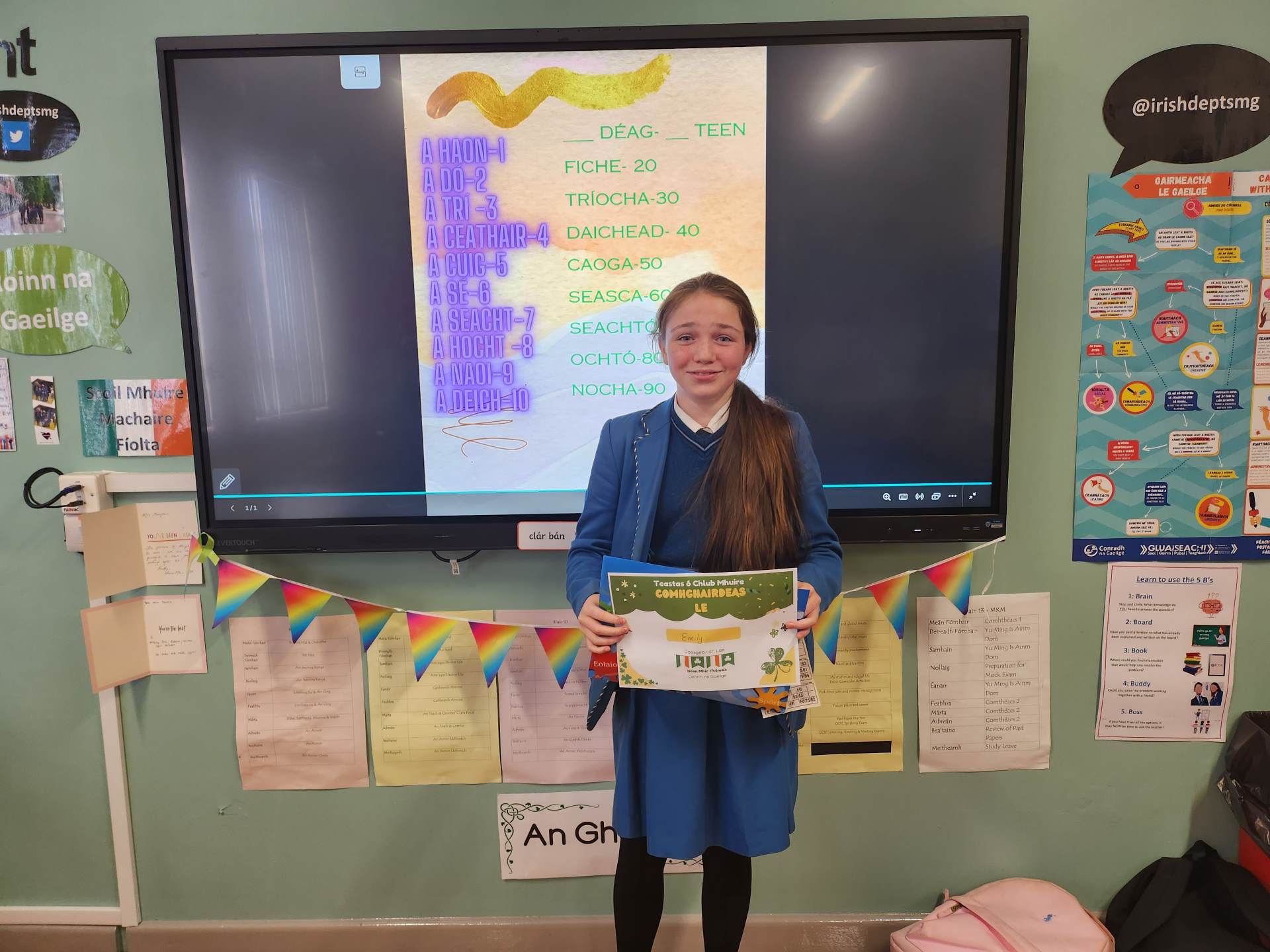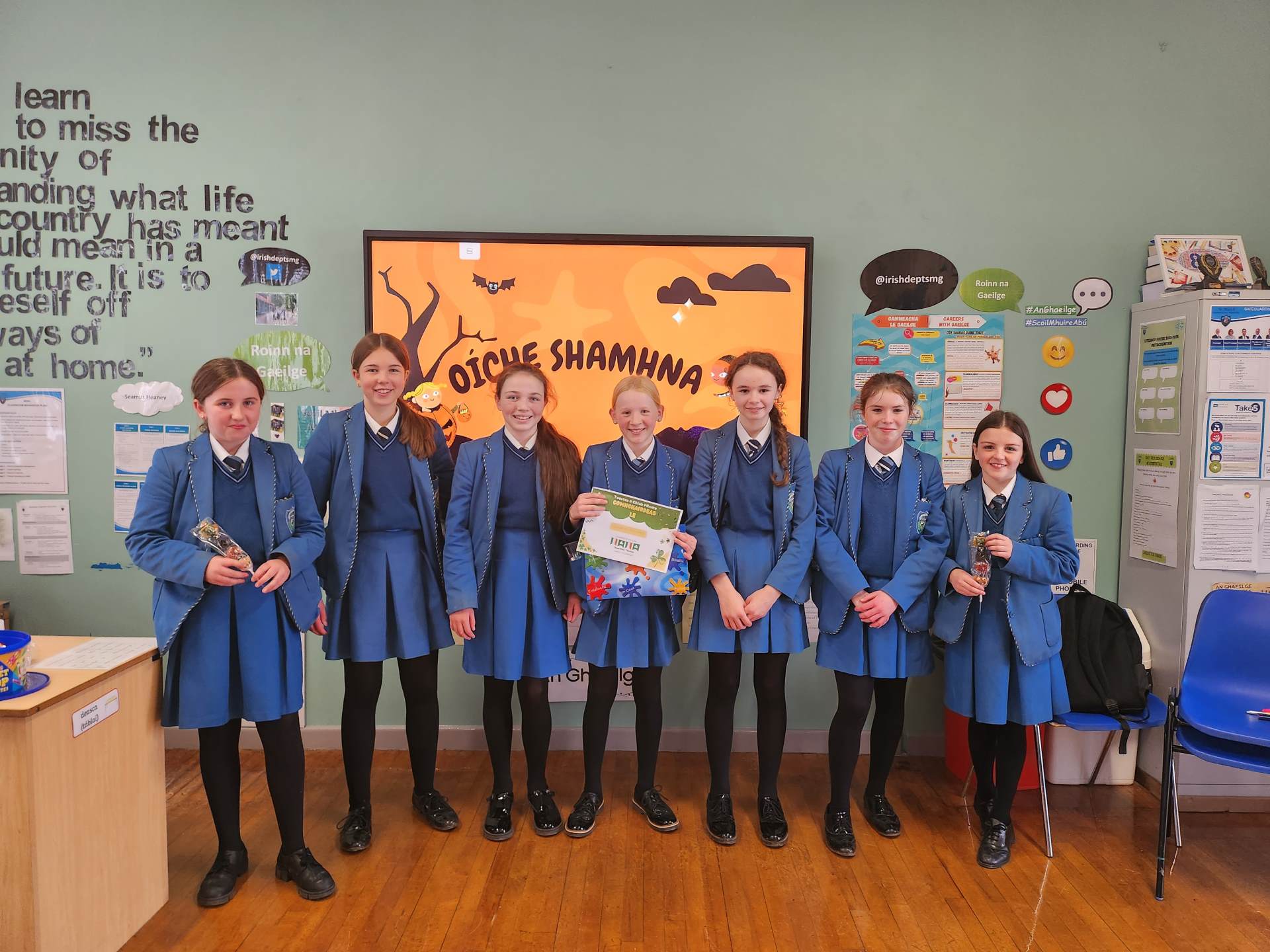 In Year 9, pupils have the opportunity to prepare for and achieve the ‘Cúpla Focal’ badge in recognition of their increasing vocabulary in the language.