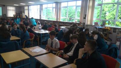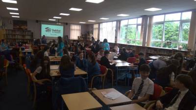 Year 9 and Year 10 students took part in a lively table quiz, brilliantly organised by our Year 11 Muiredach Cross Award pupils. Meanwhile, Year 8 enjoyed an action-packed afternoon of sport to officially open our new 4G pitch — joined by past pupils and Derry GAA stars Odhran Lynch and Cormac Murphy.