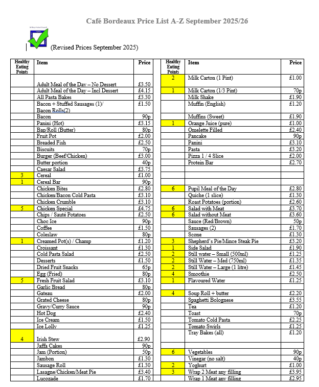 With this in mind, the catering service in St. Mary’s promotes healthy eating and encourages pupils and staff to make healthy food choices by providing healthy and nutritious meals and snacks each day.